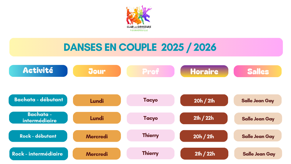 Après le 2 octobre, les essais pour les danses en couple niveau « débutants » ne seront plus possibles.